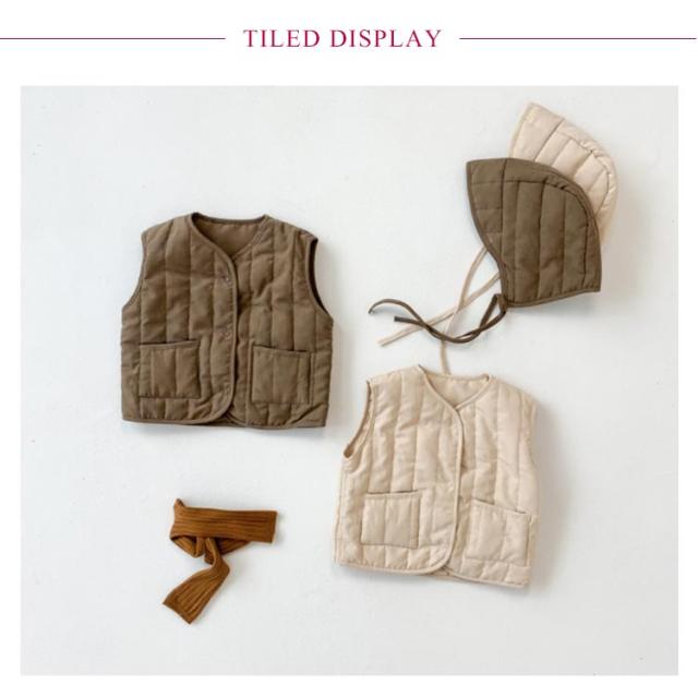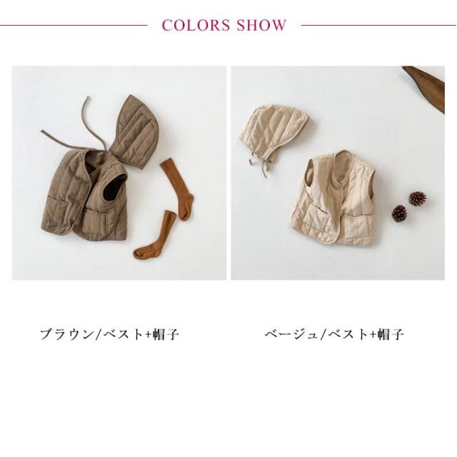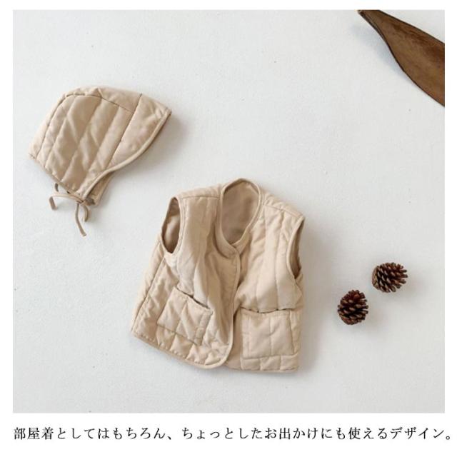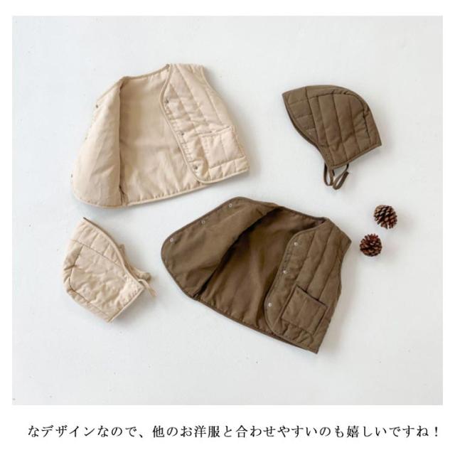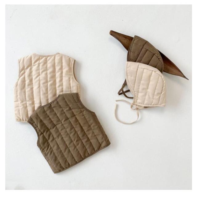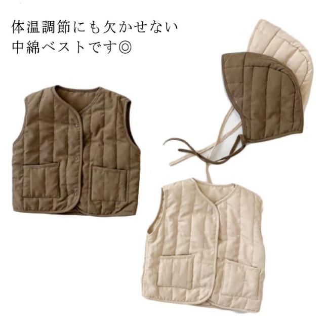 ベビー服 中綿ベスト ベスト+帽子セット 赤ちゃん 帽子付き インナーベスト コットン素材 キッズ ベビー 軽量 防寒 男の子 女の子 女児 男児 出産祝い 全2色