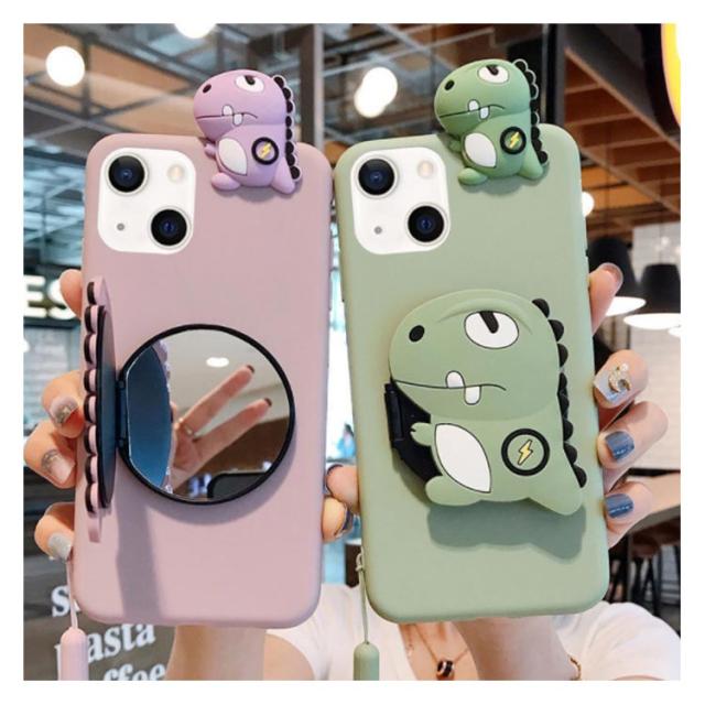 iphone13 ケース 韓国 おしゃれ 人気iphoneケース シリコン 大人可愛い テディ ダイナソー アイフォンケース iPhone5/5s iPhonese2(第二世代) ケース ミラー付き ハンドストラップ付き