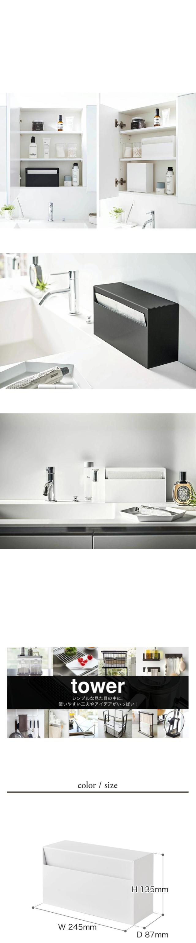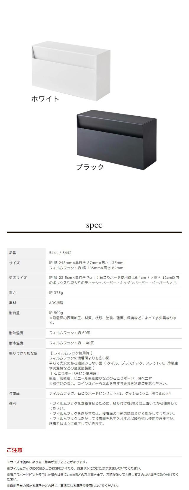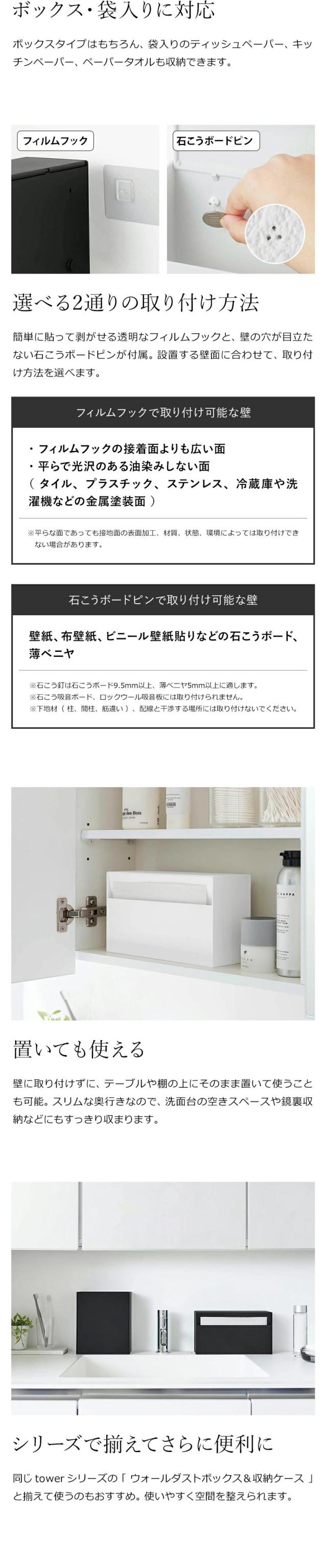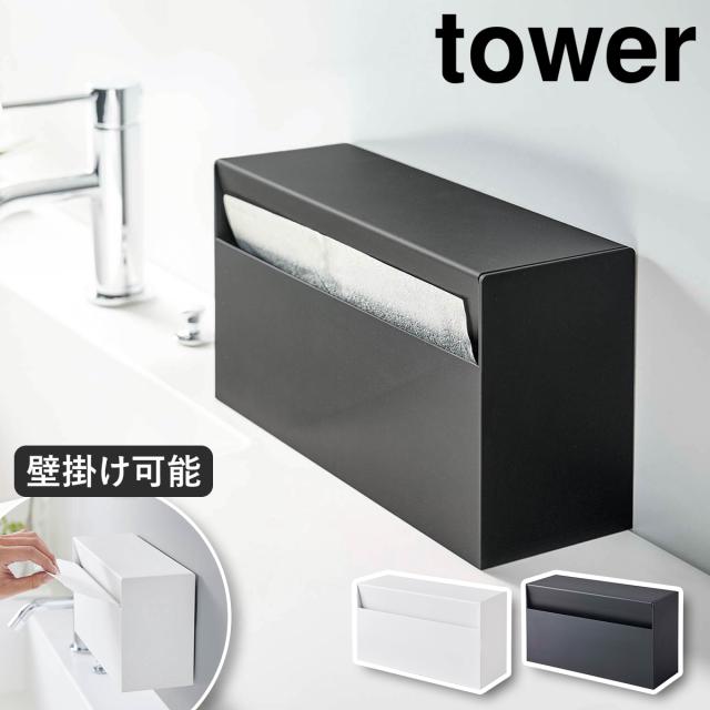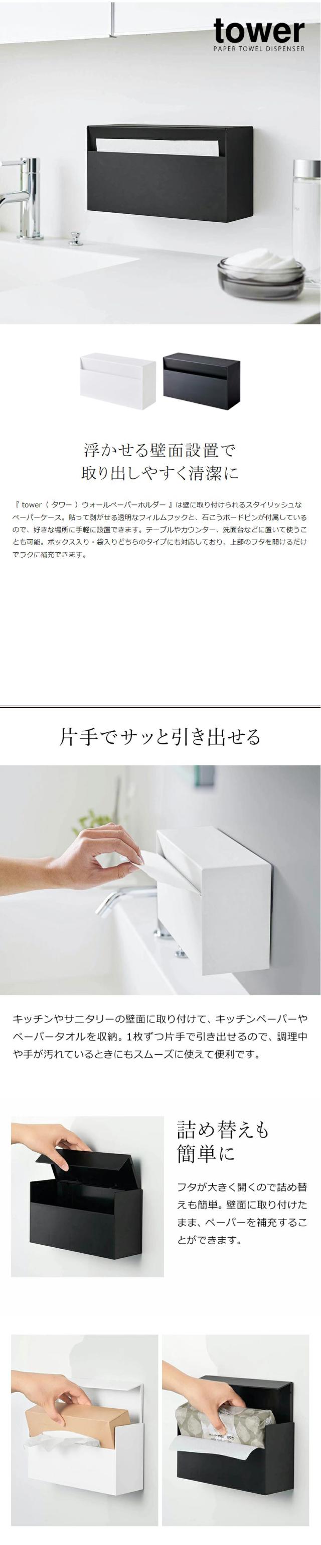 [ ウォールペーパーホルダー タワー ]山崎実業 tower キッチンペーパーホルダー 貼って剥がせる ペーパータオル ケース ボックスティッシュ ホルダー 壁面収納 キッチン収納 北欧 おしゃれ モノトーン yamazaki ブラック ホワイト 5441 5442