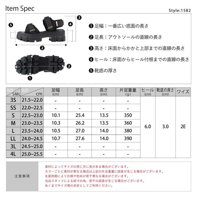 サンダル レディース ラウンドトゥ ストラップ 厚底 6cmヒール 22.5cm〜24.5cm 黒 ブラック No.1582 リバティードール