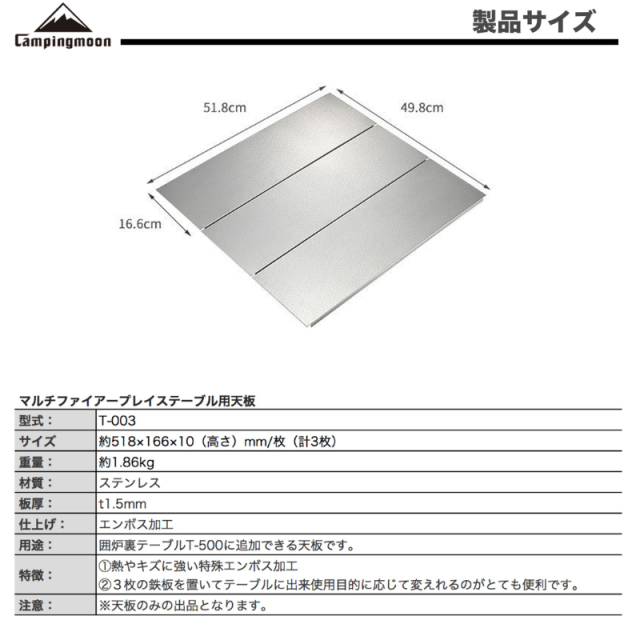 キャンピングムーン(CAMPING MOON) 囲炉裏テーブル 囲炉裏テーブル T-500用天板 3枚組 T-003