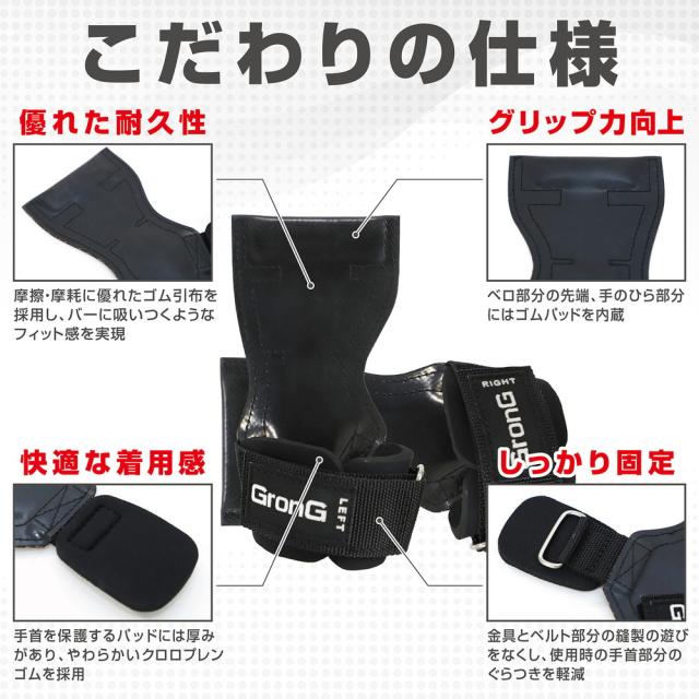 グロング GronG パワーグリップ 筋トレ メンズ レディース 両手セット 握力サポート デッドリフト ベンチプレス補助 懸垂