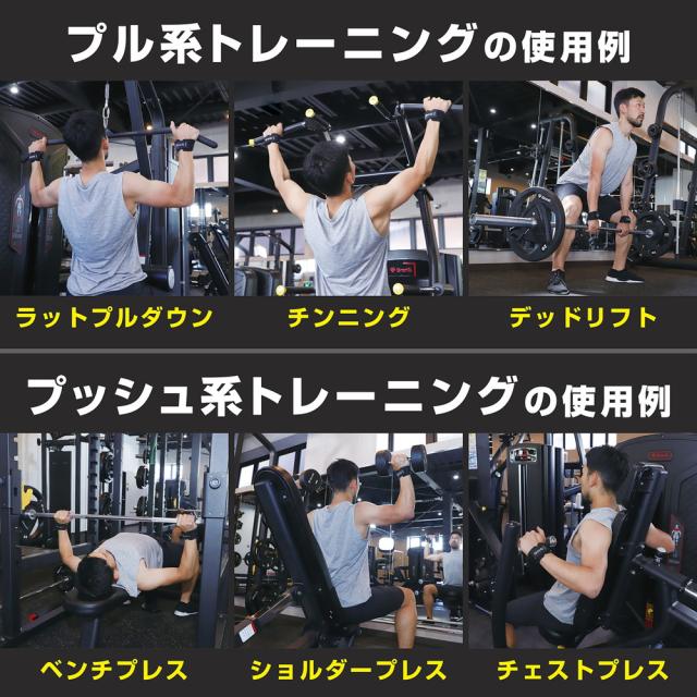 高いグリップ力でトレーニング時の握力をサポートする「パワーグリップ」です