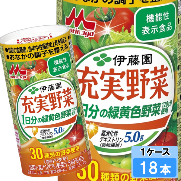 充実野菜 緑黄色野菜120g分とたっぷり食物繊維 125ml 18本 (18本×1ケース)難消化性デキストリン ビフィズス菌 善玉菌 腸活