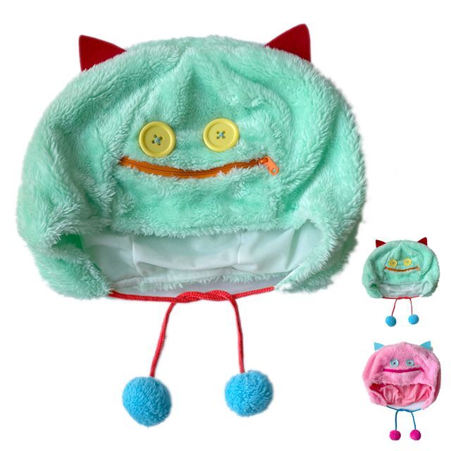 触り心地のいい、ふわもこ生地のモンスター帽子。