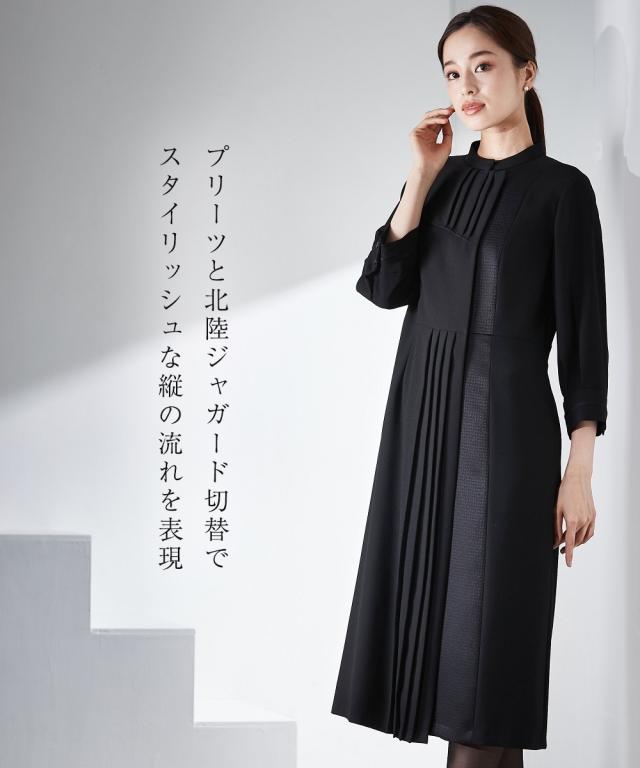 【喪服・礼服】<Callarus>防しわ北陸ジャガード切替デザインプリーツアンサンブル<大きいサイズ有>