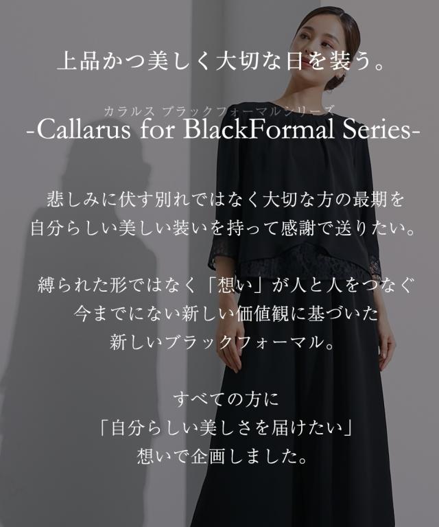 【Callarus(カラルス)】 〜for Black Formal〜まっすぐブレない美しさで人々を魅了する花“calla lily”とラテン語で輝くという意味の“clarus”を合わせた造語がブランド名の由来です。<自分らしく上品で美しい装いを大切にする方へ>縛られたカタチではなく、「想い」が人と人をつなぐシーンにもテイストにも年齢にも縛られない自由な着こなしを実現する新しいブラックフォーマル。 こだわりポイント軽快な着用感の涼やかレースブラウスワイドパンツセットスーツレイヤードレースデザインブラウスで