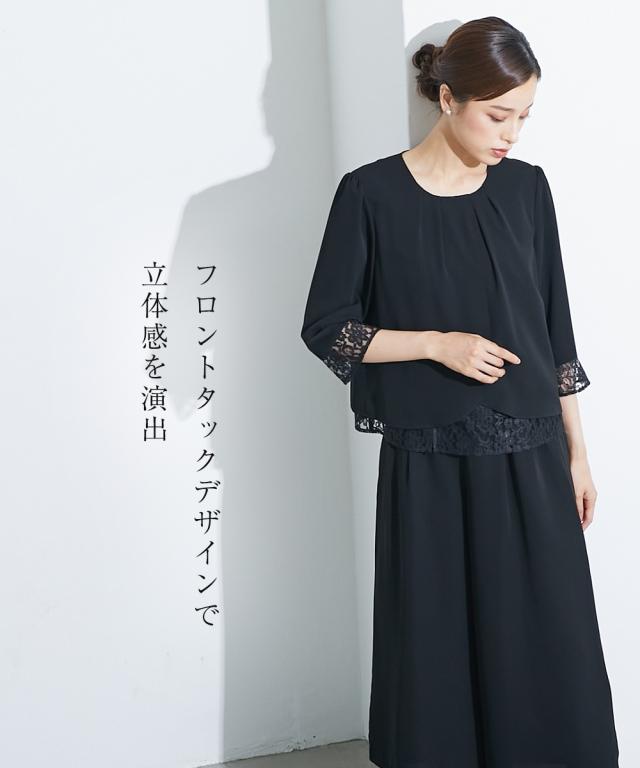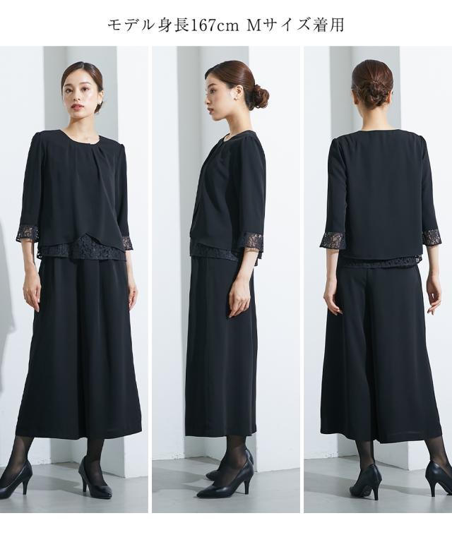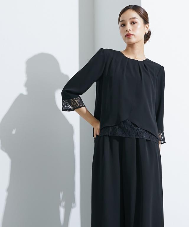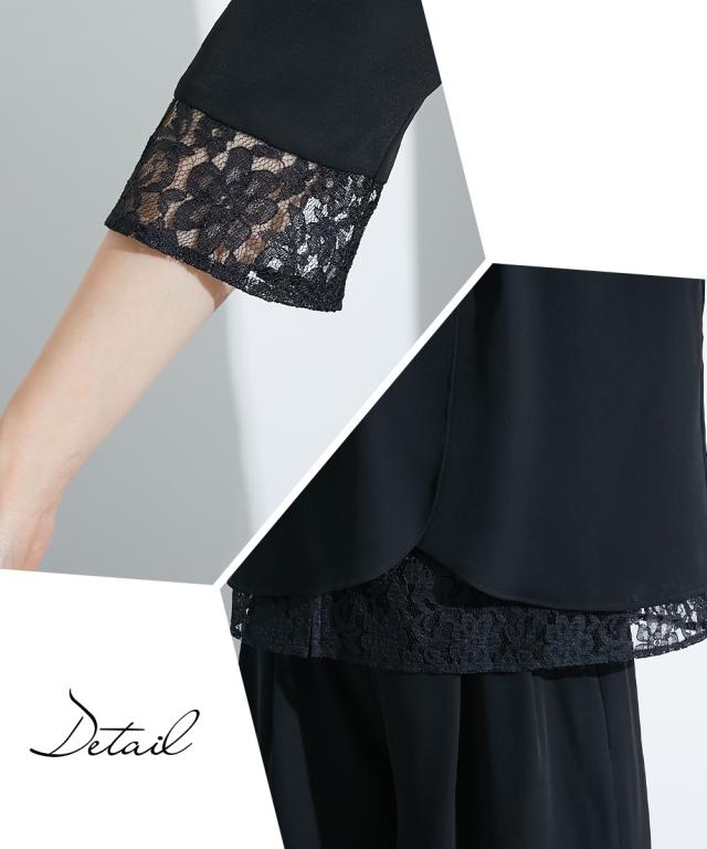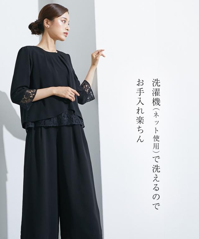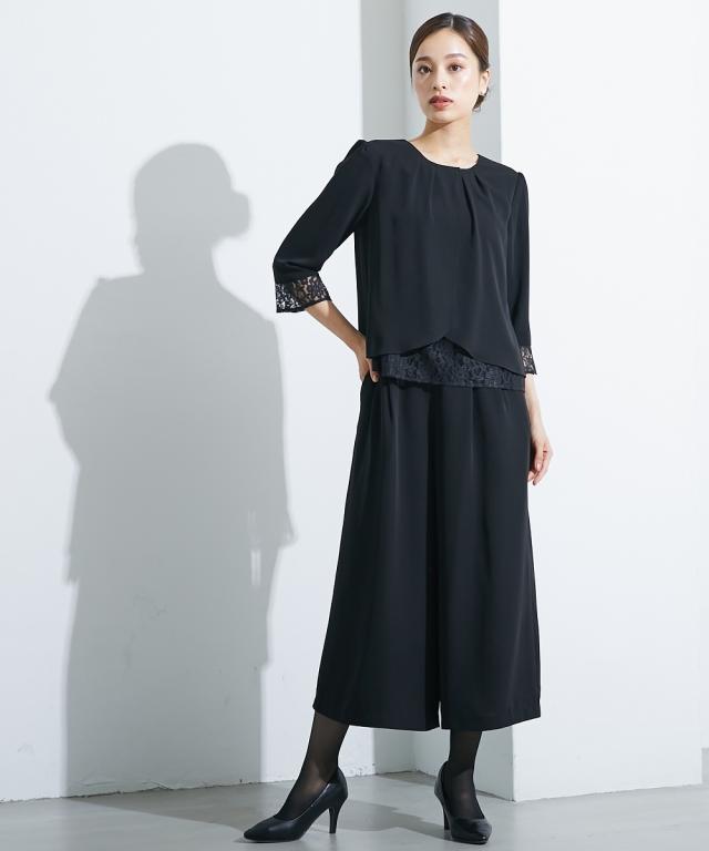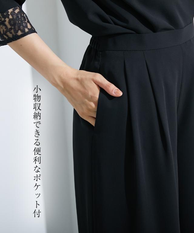 【喪服・礼服】<Callarus>洗える防しわレース使い前開きブラウス+ワイドパンツセットアップ<大きいサイズ有>