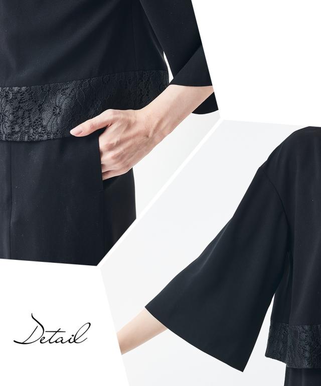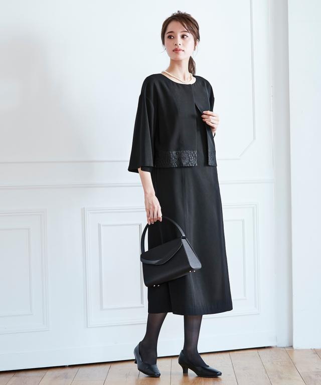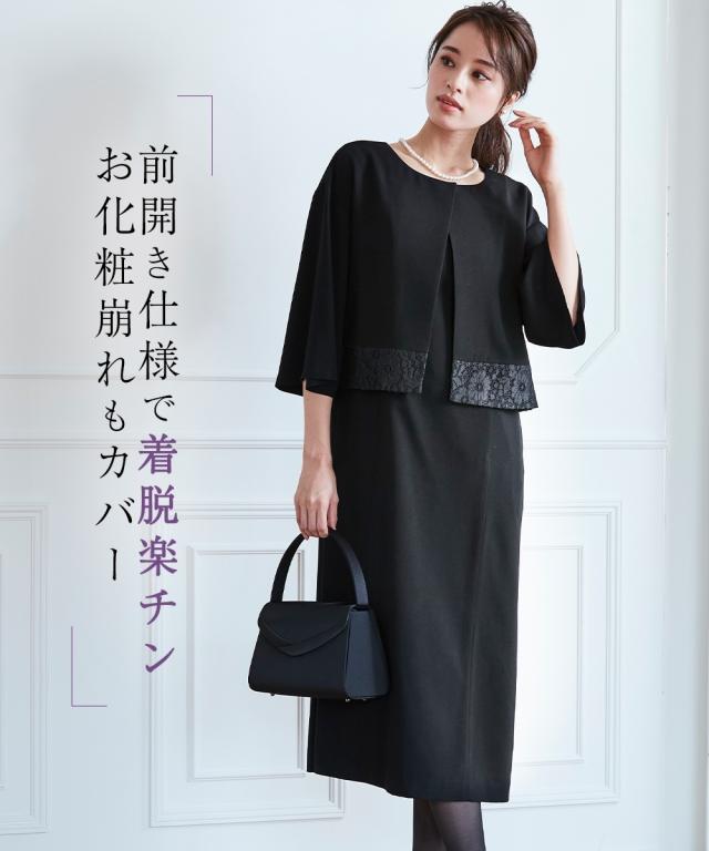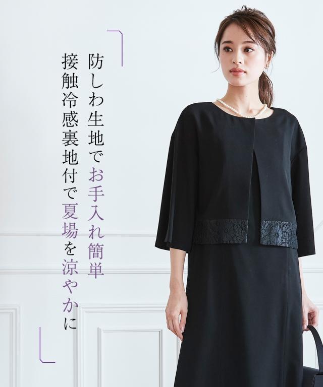 品のある格式高い装いを大切にする方へ礼節に沿った気品のある姿を叶えてくれる王道ブラックフォーマル こだわりポイント一枚できちんと見え!涼やかアンサンブル風ワンピース裾にレースをあしらった上品な大人の印象を演出してくれます前開き仕様なので、着脱楽チン。お化粧崩れもカバーしてくれます上身頃部分に接触冷感清涼裏地を使用。夏場も涼やかなに着用頂けます防しわなので、しわになりにくい洗濯機(ネット使用)で洗えるので、お手入れ楽チン!ご家庭でお手入れができます喪服としてだけでなく、結婚式・参観日・卒業式などすべてのフォ