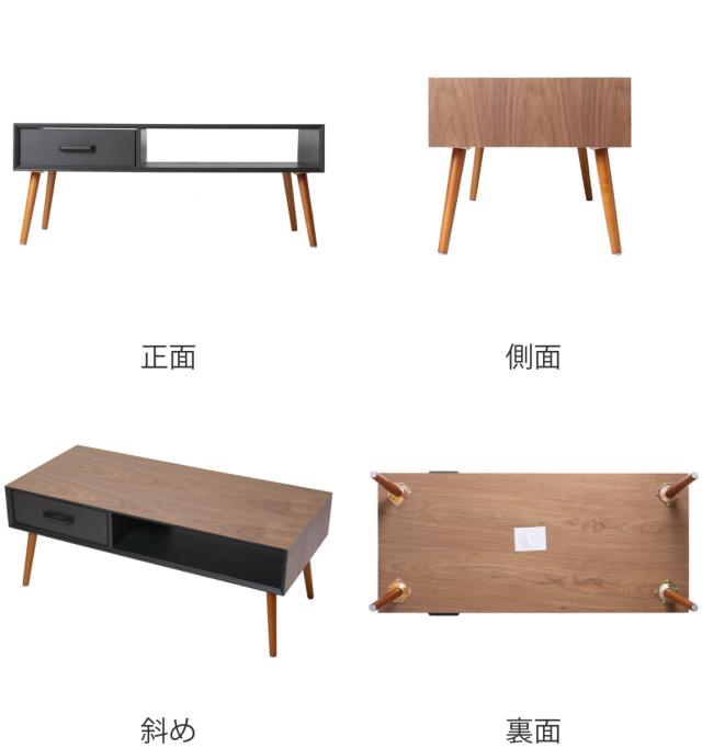 木目が映えるシンプルでモダンなデザインです。使い勝手の良いオープンラックと引き出しが付いた、デザイン性と機能性を兼ね備えたテーブルです。A4サイズの用紙が収納可能でリモコンや雑誌など、まとめておけるのでお部屋が片付きます。