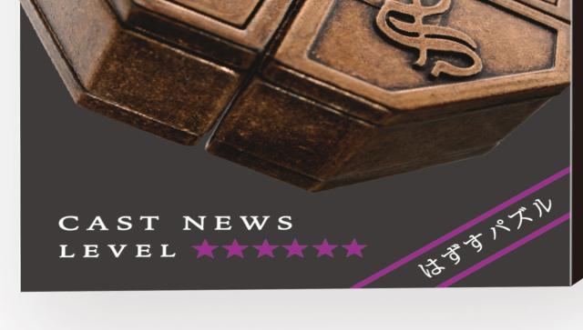 ピースは2つですが、外見上動くところが無くはずし方に迷うパズルです。世界を代表するパズル博士、芦ヶ原伸之氏によるデザインです。開発時に難易度を一般公募で決定するという企画がなされた結果「6」(最高難易度)となりました。