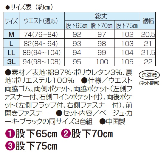 ●選べる股下丈/股下65cm、股下70cm、股下75cm