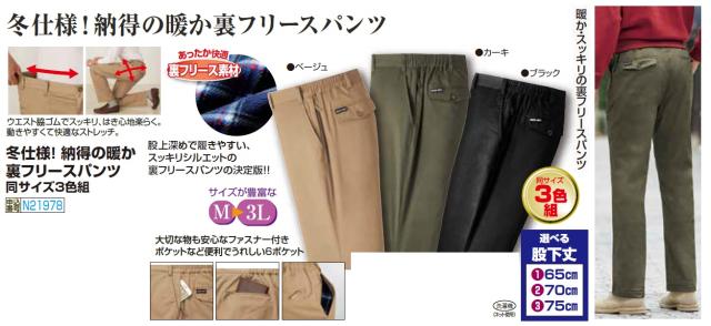 あったかパンツ 暖かい パンツ メンズ シニア 秋冬 冬仕様! 納得の暖か裏フリースパンツ 3色組 選べる股下丈 紳士服 男性 長ズボン ベージュ カーキ ブラック 黒 緑 防寒 シニアファッション 50代 60代 70代 80代 父の日 お父さん ズボン fri p21978 p23797