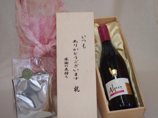 贈り物いつもありがとう木箱と珈琲ドリップセット挽き立て珈琲(ドリップパック5パック)サンタ・ヘレナアルパカピノ・ノワール赤ワイン (チリ) 750ml