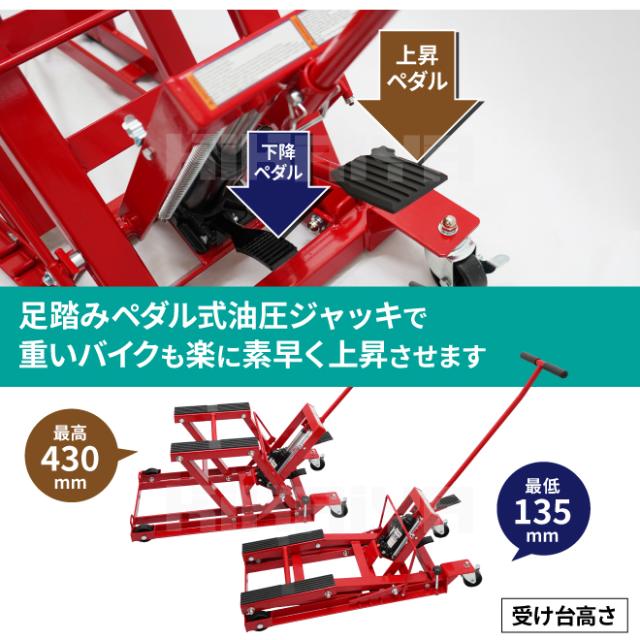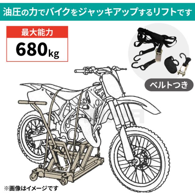 バイクジャッキ 油圧式 バイクリフト バイクメンテナンス 耐荷重680kg KIKAIYA