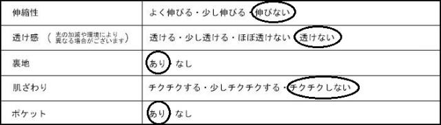 | 素材 | 表地:ポリエステル100% 裏地:ポリエステル100% |