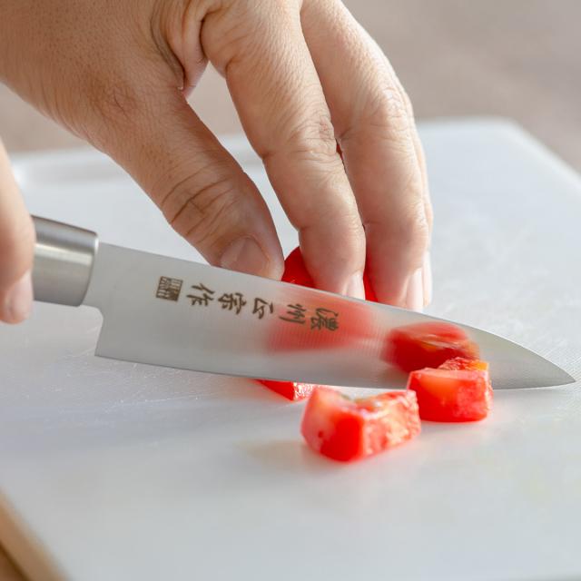 刀身には錆びに強く、シャープな切れ味のモリブデンステンレス刃物鋼を採用しています。お手入れが簡単なのでご家庭でも扱いやすく、研ぎ直して長くお使いいただけます。