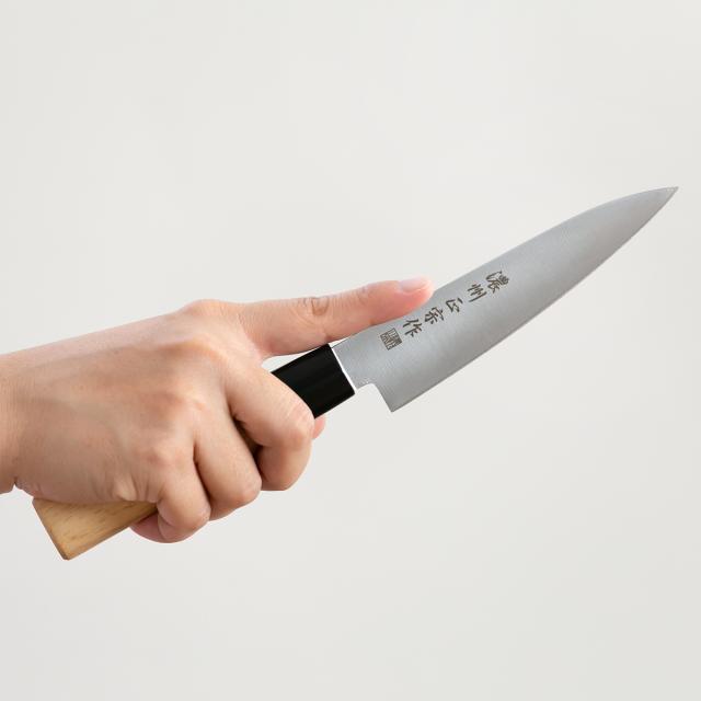 刀身には錆びに強く、シャープな切れ味のモリブデンステンレス刃物鋼を採用しています。お手入れが簡単なのでご家庭でも扱いやすく、研ぎ直して長くお使いいただけます。