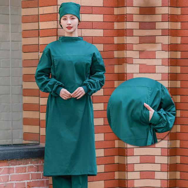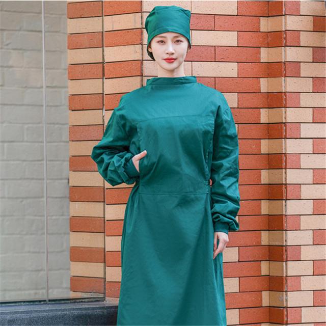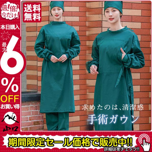 手術ガウン ロング丈 男女兼用 レディース メンズ 手術着 綿 異物混入防止仕様 長袖 メディカルウェア 病院 ドクター 医師 制