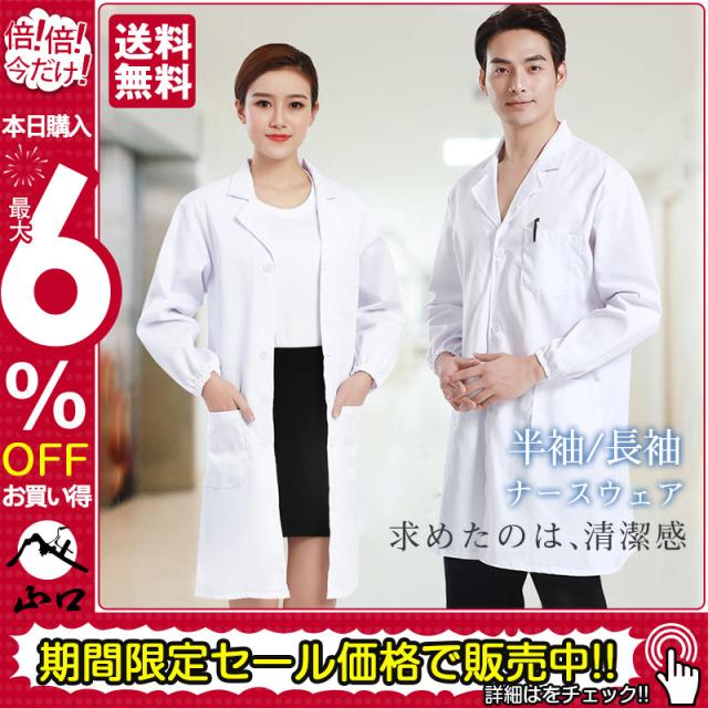 ナースウェア 白衣 ロールカラー ナースコート エステ ナース服 男女兼用 看護師 医者 医療 看護 介護 歯科 ドクター 医師