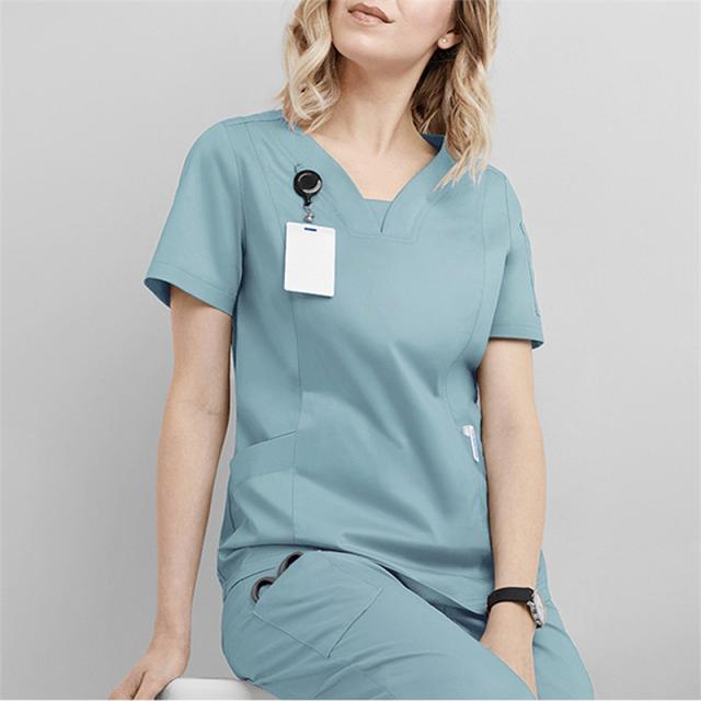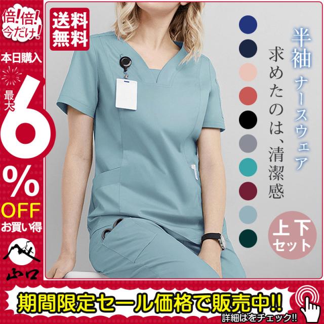 ナースウェア 2点 ロールカラー スクラブ エステ パンツ 半袖 レディース 看護師 医者 医療 看護 介護 歯科 ドクター 医師
