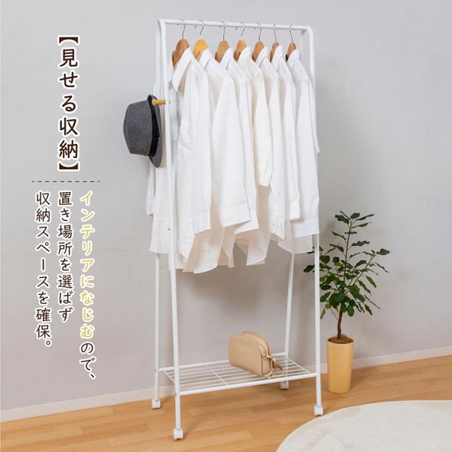 ハンガーラック ホワイト シングル キャスター付き 約幅68.5×奥行45×高さ171cm 洋服ラック 小物掛けフック アストロ 731-27