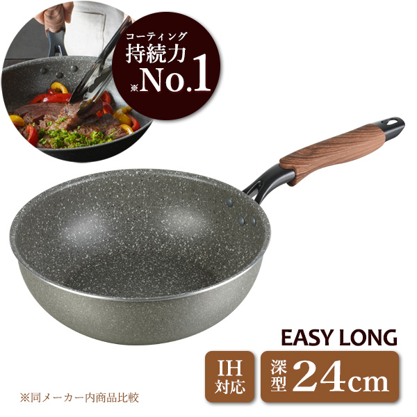 IH対応 ディープパン イージーロング 深型24cm RB-2148 | 高耐久 ガスコンロ IH対応 こびり付きにくい 洗いやすい フッ素樹脂加工 長持ち 金属ツールOK アルミ製 深型 炒め鍋 中型 ガス火