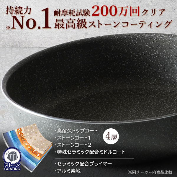 耐摩耗試験200万回をクリアし、こびり付きにくさが持続する耐久性の高いディープパン。
