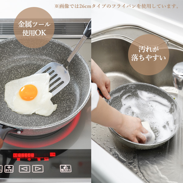 金属ツール使用OK!傷付きにくいので、金属のフライ返しやトングなどもお使いいただけます。
