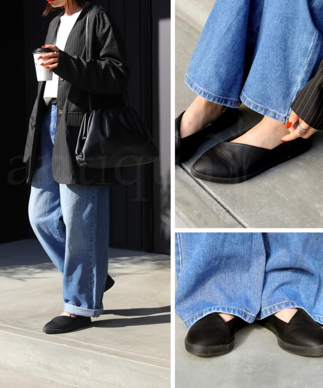 | 普段24.0-24.5cmを履くスタッフY.Mさん | 幅・甲普通 | MとLを≪素足≫で試着しました。 M <幅>窮屈です <甲>ピッタリで余裕はありません <つまさき>指先が当たります <かかと>ピッタリで余裕はありません L <幅>丁度良いです <甲>丁度良いです <つまさき>程よくゆとりがあります <かかと>少しゆとりがありますが、歩いても浮きません <ひとこと>Mサイズでも履くことはできましたが、ポインテッドデザインで先が細いので指先が当たるのが気になりました。 Lサイズは程よくゆとりがあり薄手の靴下を履いて丁度良いサイズ感でした。 きちんと感がありながら楽に履ける優秀な一足です。 |