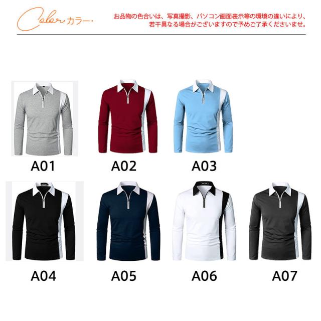 ポロシャツ メンズ 長袖 polo ゴルフウェア Tシャツ 切り替え インナー ファスナー 紳士服 ゆったり カジュアル シンプル