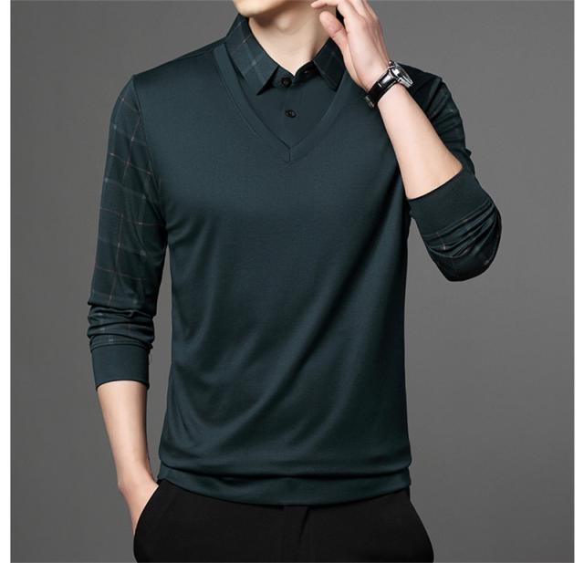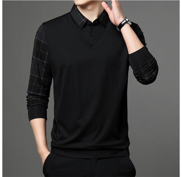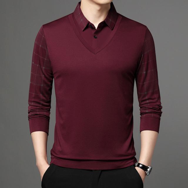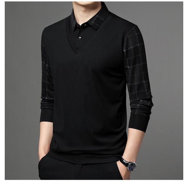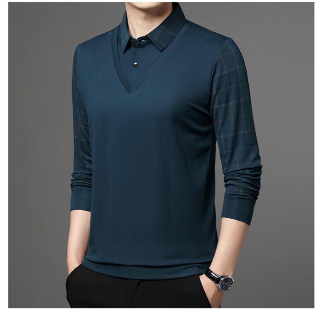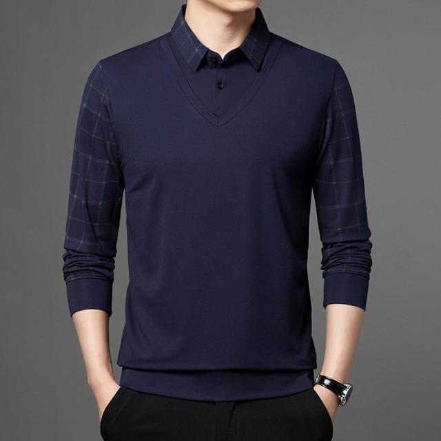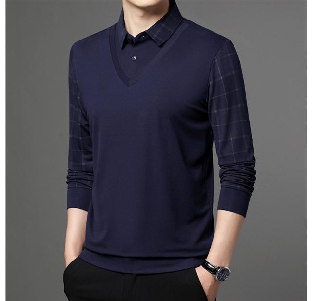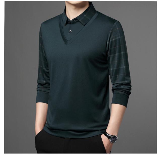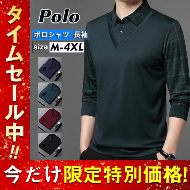 ポロシャツ メンズ 長袖 Tシャツ フェイクレイヤード ゴルフウェア プルオーバー ビジネス チェック柄 ゆったり おしゃれ カジ