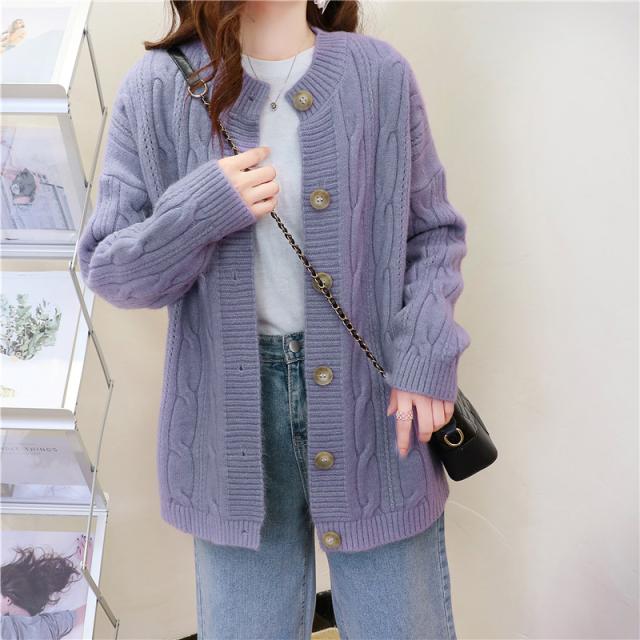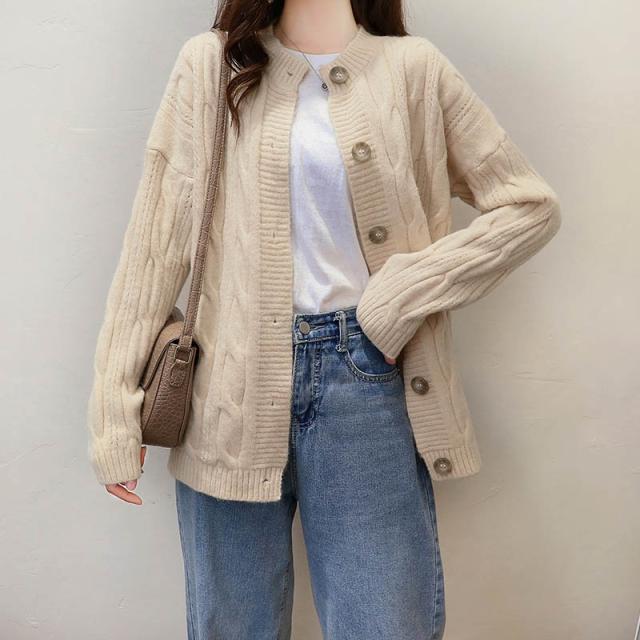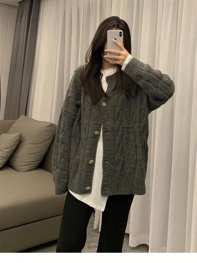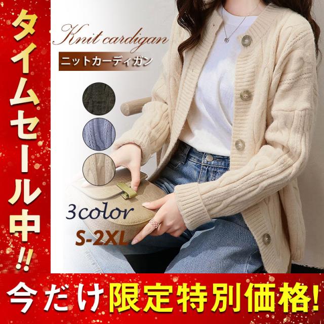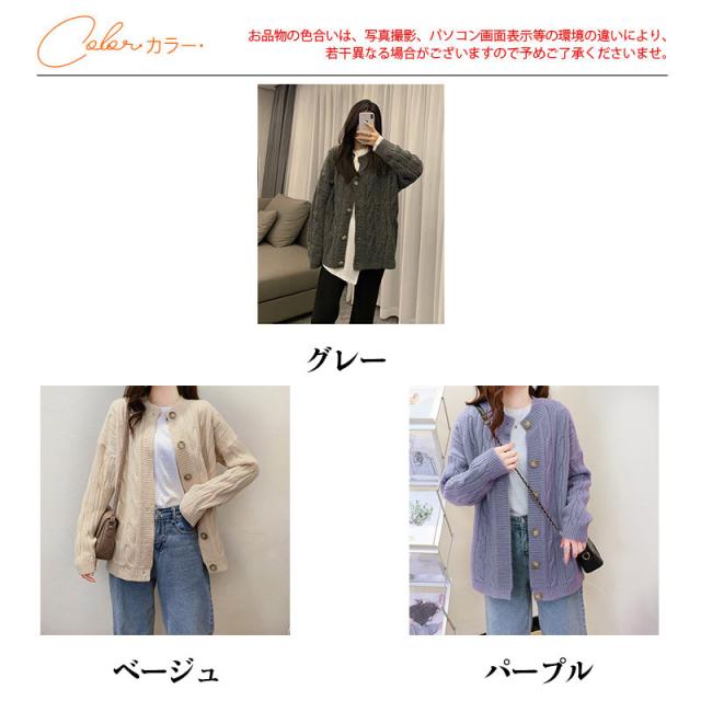 ニットカーディガン レディース アウター セーター 長袖 羽織り ゆったり 大きいサイズ ヴィンテージ カジュアル 着痩せ 無地