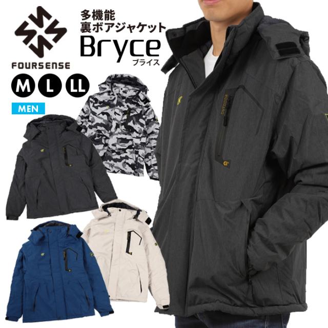 あったか 裏地ボアジャケット メンズ 無地 迷彩 フォーセンス 男 紳士 軽量 撥水 防寒 雪 冬 起毛 FOURSENSE FOG-001 ブライス