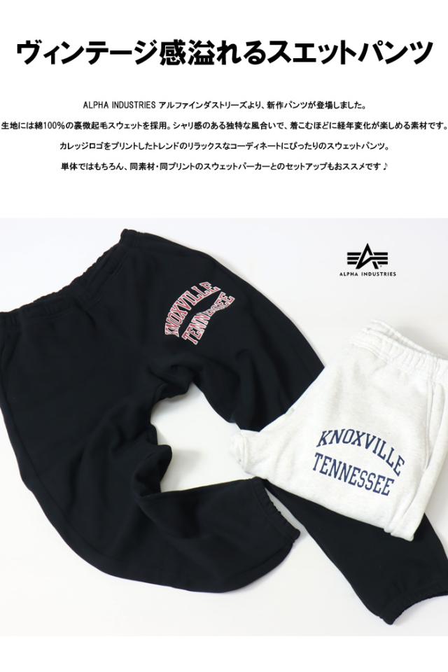 SALE セール ALPHA INDUSTRIES アルファ インダストリーズ カレッジプリント スウェットパンツ 裏微起毛 メンズ 送料無料 TB1074
