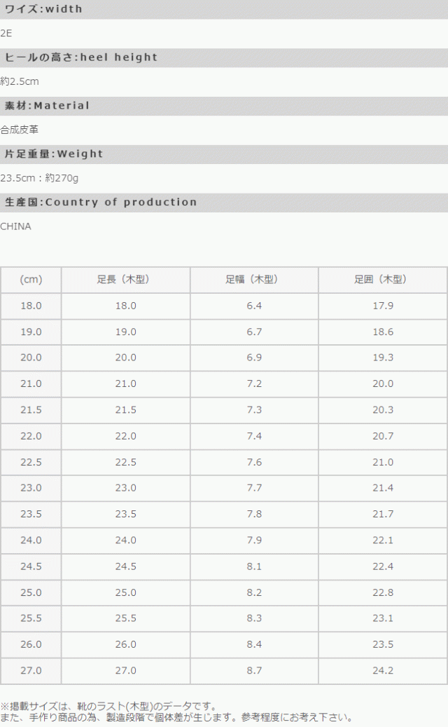 足長(木型):22.5cm/足幅(木型):76cm