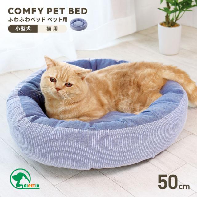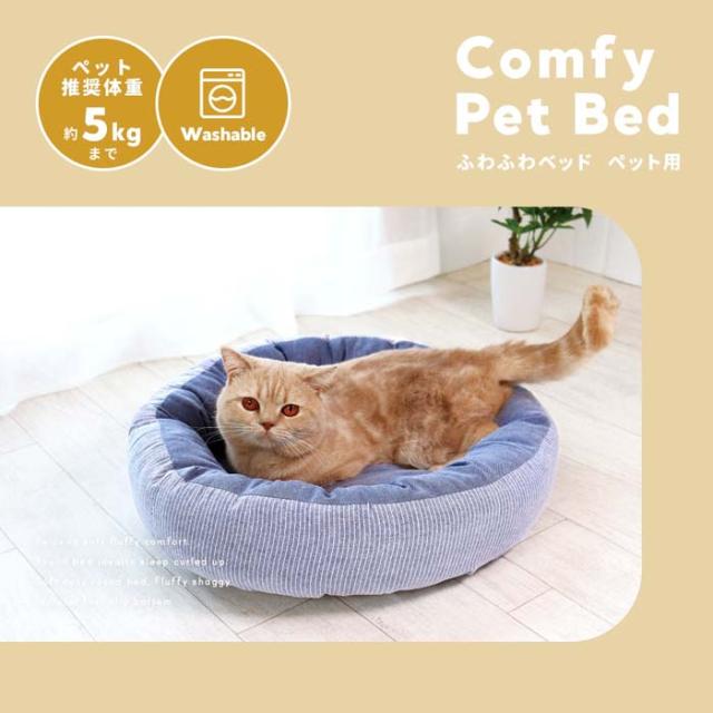 ペットベッド ふわふわベッド ペット用 ストライプ柄 1009658 直径50cm 約5kgまで対応
