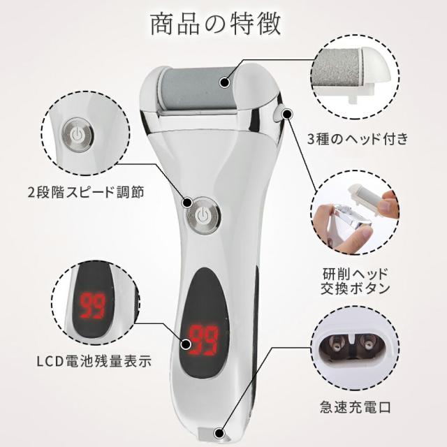 USB充電式 電動かかと 角質取り 力を使わず簡単足ケア