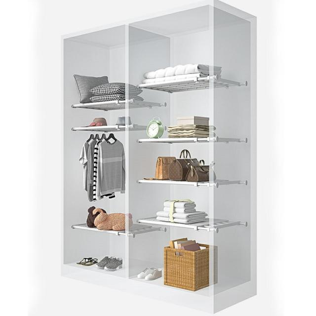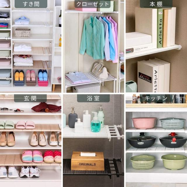 | 【多機能伸縮棚】すき間、玄関、浴室、キッチンなど場所に設置するとすっきり片付きます。クローゼット、シューズラック、収納棚、本棚、食器棚として使えます。立てて突っ張れば傘などが掛けられます。猫と小型犬を逃亡防止に利用できるだけでなく、お子さんの安全や防犯用柵代わります。 | |