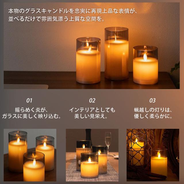 LED キャンドルライト 自動消灯タイマー 3本+リモコンセット 電池式 間接照明 本物の蝋 蝋燭 祈願キャンドル タイマー機能 結婚式 ゆらゆら