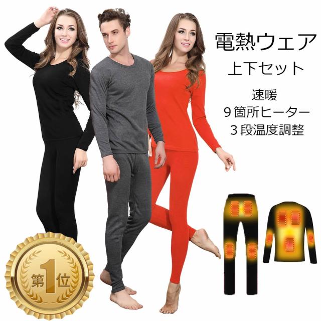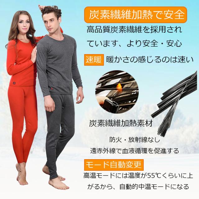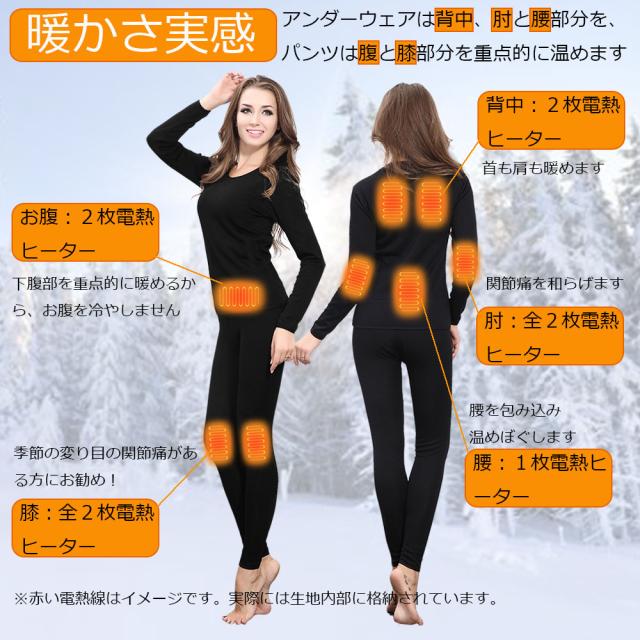 電熱ウェア 防寒インナー 充電式電熱下着 ヒーター内蔵 電熱インナーウェア ヒーター タイツ 秋冬用 炭素繊維加熱 電熱服 裏起毛 暖かい USB加熱 バッテリー給電 9箇所ヒーター 3段階温度 防寒対策 レディース メンズ