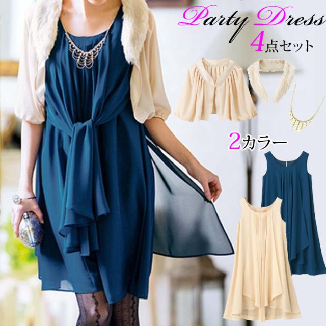 ドレス パーティドレス 20代 30代 40代 ワンピース パーティードレス 膝丈 シフォン フォーマル 結婚式 披露宴 2次会 謝恩会 発表会 ピアノ発表会 演奏会 フォーマル ベージュ ネイビー アクセサリー付き かわいい 可愛い 上品 春 夏 秋 冬 小さいサイズ 7号