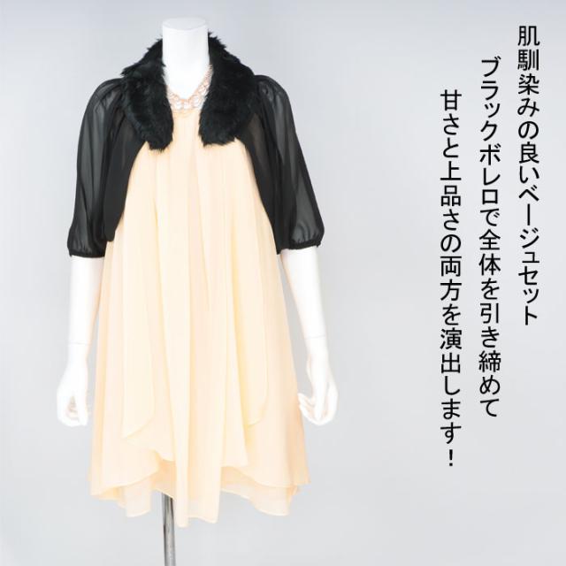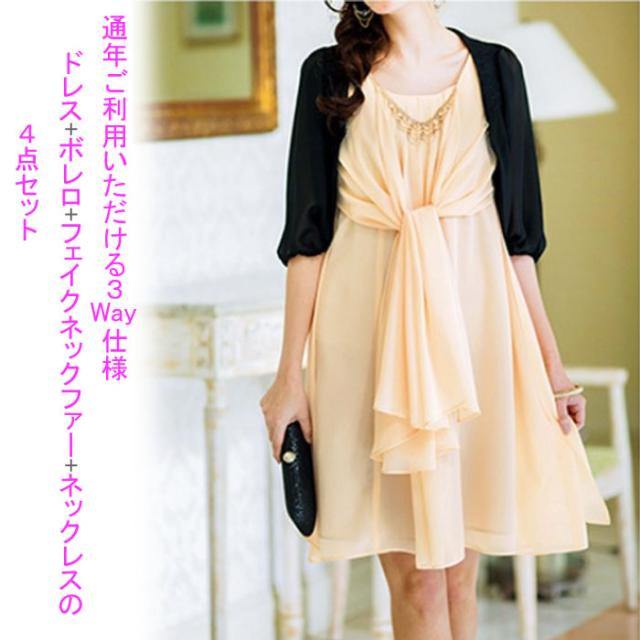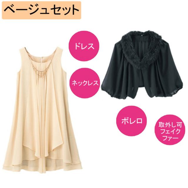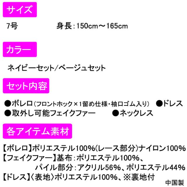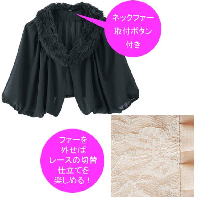 ・ワンピース裏地付 ・ボレロ&ネックファー:取外し可能 |