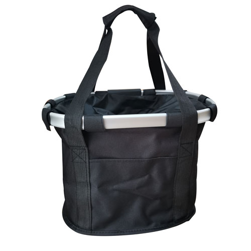特長:自転車用フロントバスケットとエコバッグの2通りの使い方ができるアイテムです。 ハンドルバー部分にマウントする形で簡単に取り付け・脱着が可能で、スーパーなどで買い物をしてそのまま自転車に取り付けるという使い方ができます。 軽くて頑丈なアルミフレームに水や汚れに強いポリエステル生地で出来たバッグとして普段はお使いいただけます。 耐久性と耐水性に優れたポリエステル生地を使用、天気の悪い日も活躍します。