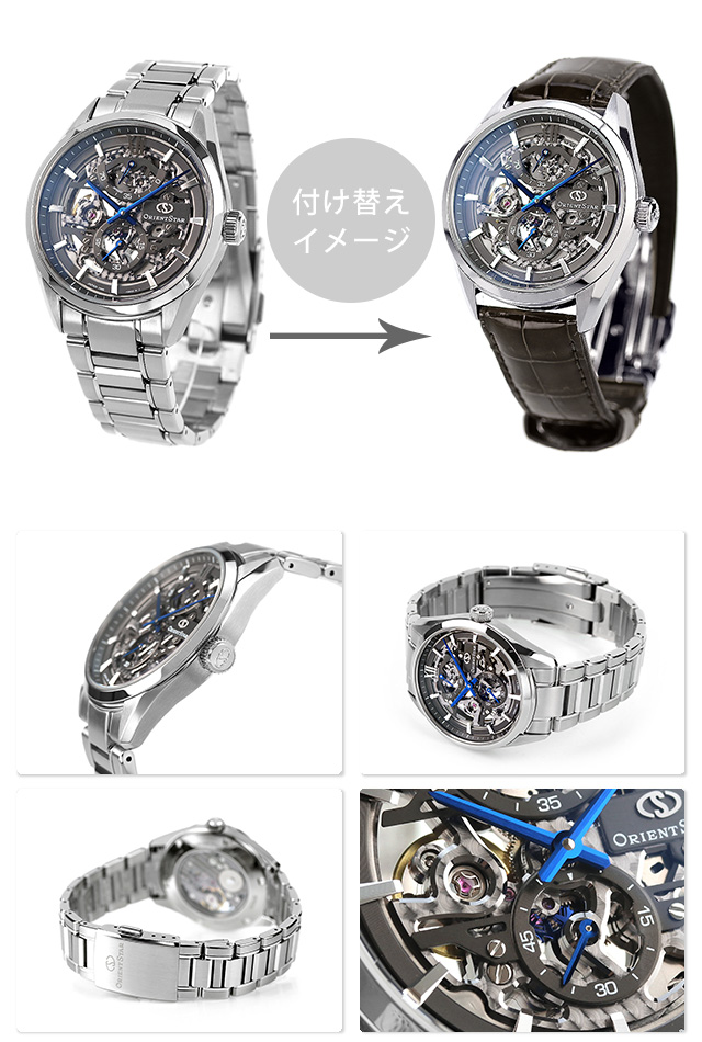 オリエントスター オープンハート 替えベルト コンテンポラリー スケルトン 手巻き 腕時計 メンズ ORIENT STAR RK-AZ0102N アナログ メタリックグレー 日本製 ブランド おしゃれ 防水 プレゼント 男性 実用的