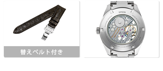 | 仕様 | 日常生活用防水(5気圧) 平均日差+15秒〜-5秒 駆動期間:約70時間以上 秒針停止装置付 パワーリザーブ機能 オープンハート スクリューバック バックスケルトン JIS1種(4800A/m以上) 石数 22石 日本製 |
