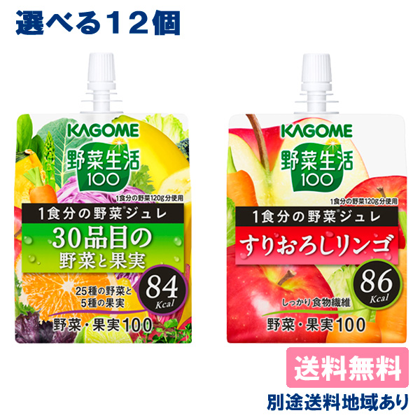 カゴメ 野菜生活100 1食分の野菜ジュレ 30品目の野菜と果実 すりおろしリンゴ ゼリー飲料 パウチ 選べるセット 12個 (6個入 x 2) 送料無料 別途送料地域あり