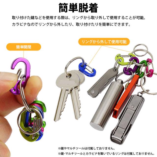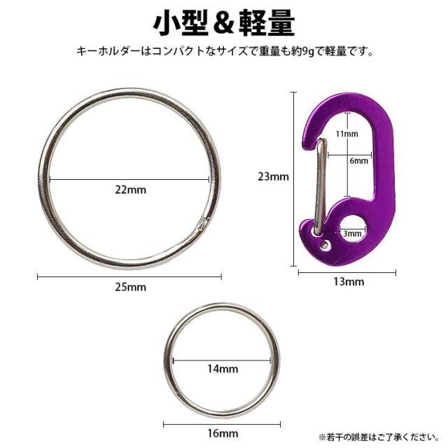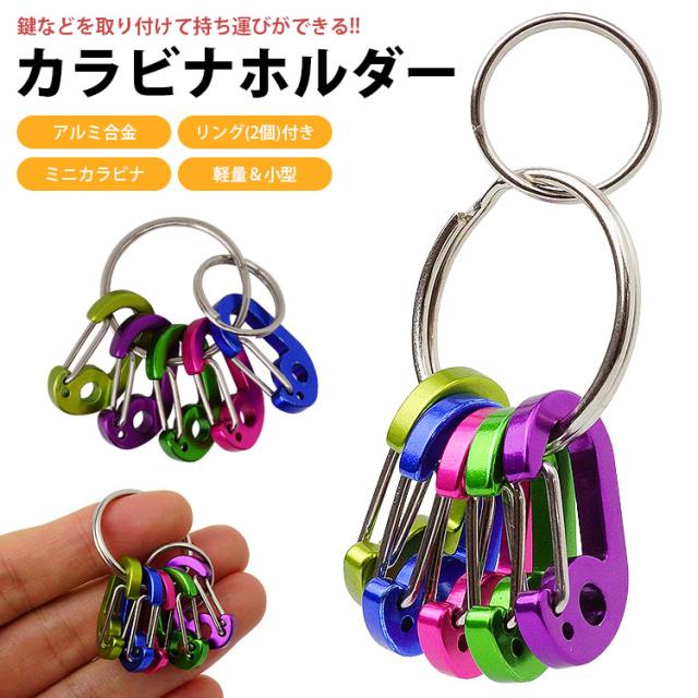 キーホルダー カラビナ ホルダー ミニカラビナ リング 2個付き 軽量 小型 アルミ合金 持ち運び便利 アウトドア 鍵 カギ