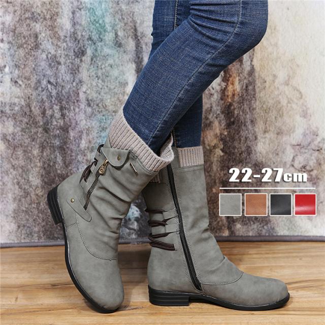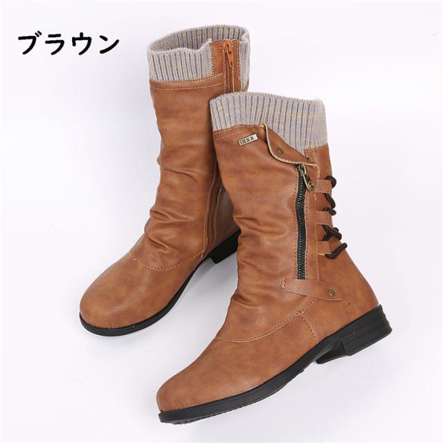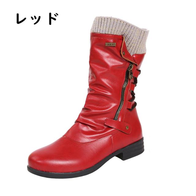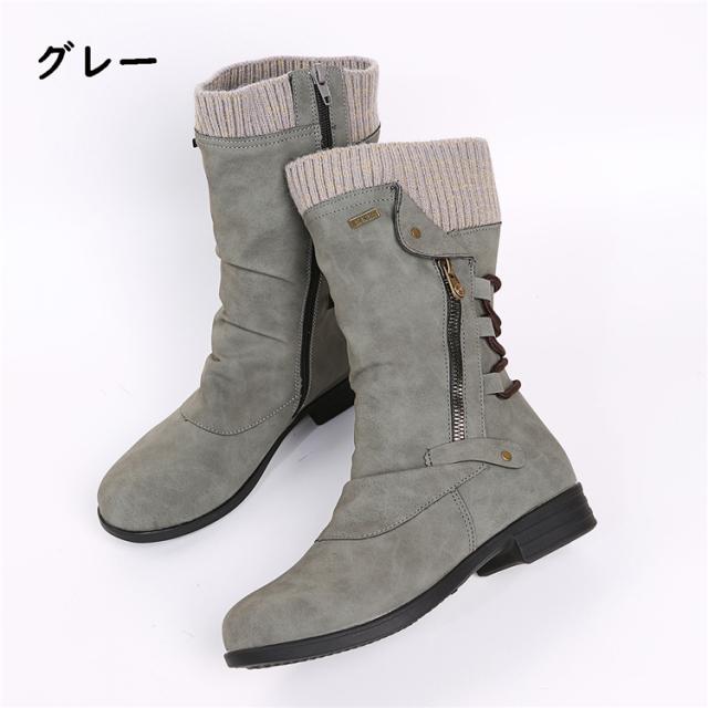 マーティンブーツ レディース 通勤 通学 旅行 靴 ブーツ レディース ロングブーツ スクエアトゥ ミドルヒール サイドファスナー 22-27cm