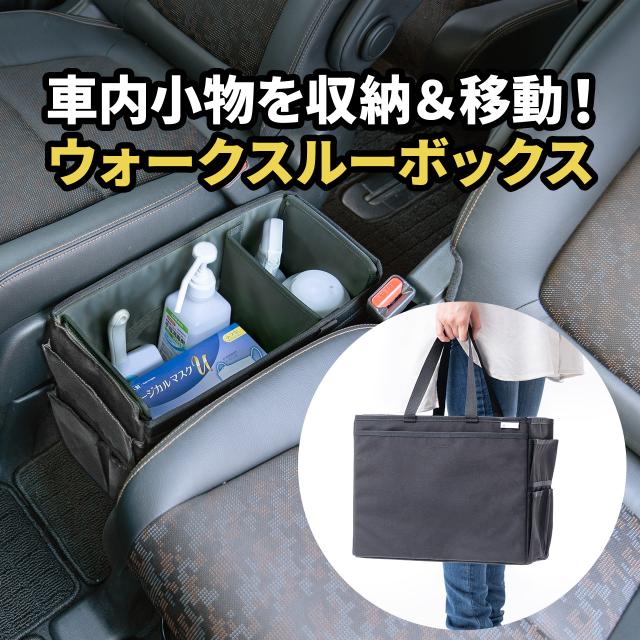⇒ご購入の前にご確認下さい車内の小物をすっきり収納するできるウォークスルーボックス。たっぷりと収納ができ、取っ手付きで持ち運びにも便利なコンソールボックス。コンパクトに折りたたんで収納することができる車用ボックス。【WEB限定商品】
